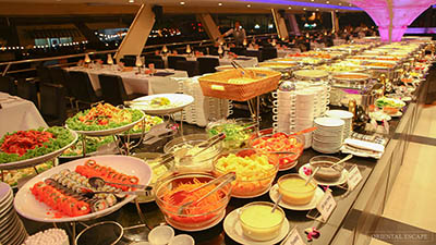 The cruise gently glides along the Chao Phraya River, passing Bangkok’s iconic landmarks. Enjoy a lavish international buffet featuring Indian,Thai, Western, and seafood specialties, along with delightful desserts.
